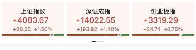 今天(1月6日),截至收盘,上证指数涨1.5%,报4083.67点,创逾10年新高;深证成指涨1.4%,报14022.55点;创业板指涨0.75%,报3319.29点。